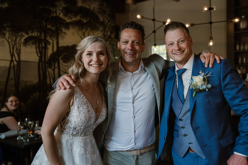De ceremonie stond volledig in het teken van hun persoonlijke verhalen. We stonden stil bij de dierbare familiebanden, zoals de steunpilaren die Emma heeft gevonden in haar familie, en bij de hechte band van Elroy met zijn ouders, die ook als getuigen aan zijn zijde stonden. Hun vrienden zorgden voor de nodige vrolijkheid, met anekdotes die varieerden van zangtalenten op de camping tot Toppers-concerten. Hun vriendschap liet zien hoe trouw en humor moeiteloos hand in hand kunnen gaan.